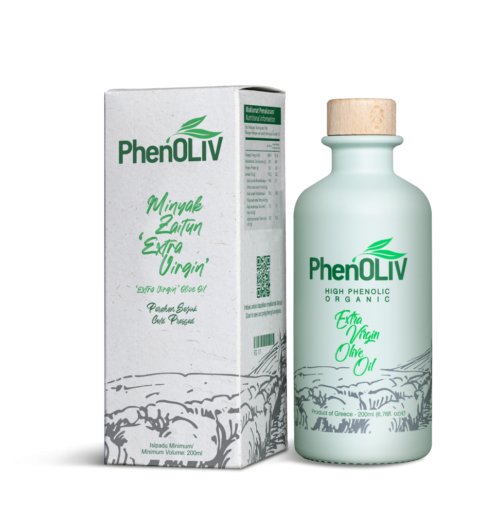 Minyak Zaitun ‘Extra Virgin’ Organik Tinggi Fenolik adalah 100% semula jadi dan berkhasiat yang dihasilkan dari pokok-pokok di pergunungan Wilayah Arkadia, Yunani. Polifenol adalah mikronutrien yang terdapat pada tumbuhan, dengan khasiat dan faedah yang luar biasa bagi tubuh manusia. PhenOLIV Organic mengandungi kadar Oleocanthal, Oleacein, Ligstroside Aglycon & Squalene yang sangat tinggi.