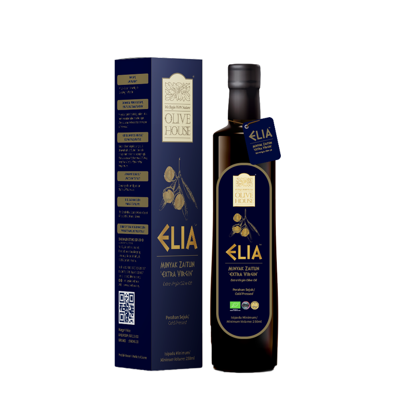 Minyak Zaitun ‘Extra Virgin’ Organik Elia adalah 100% semula jadi dan tinggi nilai khasiat yang dihasilkan dari pokok-pokok di pergunungan Wilayah Arkadia, Yunani. Tinggi nilai Hydroxityrosol derivatives serta bahan aktif semula jadi yang lain bermanfaat untuk kesihatan kulit dan wajah serta kesihatan tubuh secara keseluruhan.
